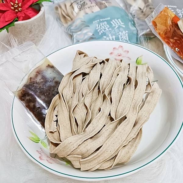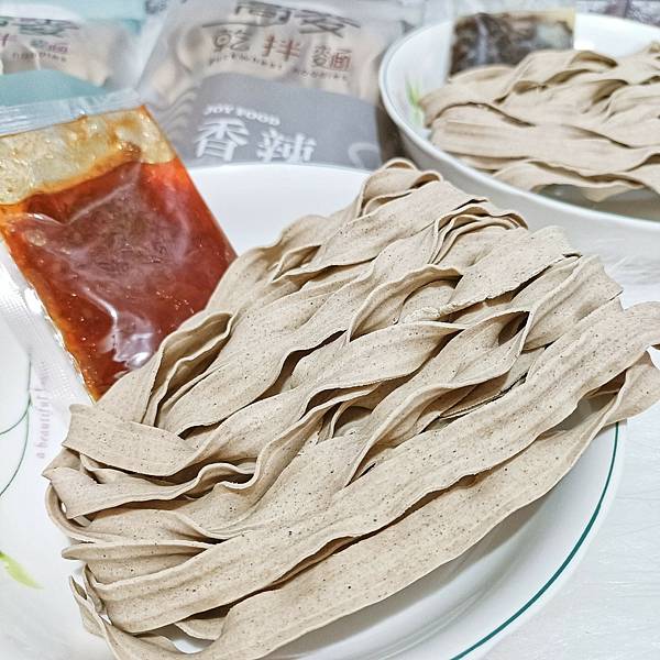 寬麵的麵條更有Q彈口感而且使用黃金蕎麥含有豐富蛋白質﹐所以容易有飽足感!還有低GI﹐健康低GI屬於低升糖食物﹐升糖指數比精緻澱粉少於50%!是澱粉類替代品的最佳首選呢!!還含豐富高膳食纖維﹐更是唯一同時含有膽鹼和蘆丁的穀物食物﹐其中蘆丁容易溶於水﹐因此煮麵的湯可以一起食用﹐能吸收更多營養﹐顏色越深的苦蕎也含有越多的蘆丁哦!還有麵條上這些一點一點可不是發霉哦!!而是苦蕎的顏色哦!就連特製醬料都比市面上少於200大卡!誰說好吃的東西不健康!!纖享樂的蕎麥乾拌麵好吃跟健康一同兼顧呢!