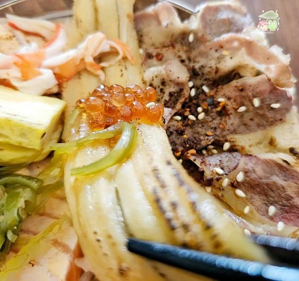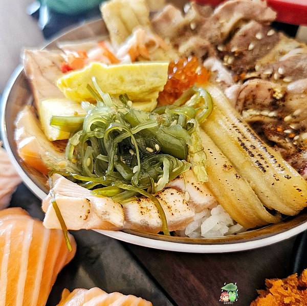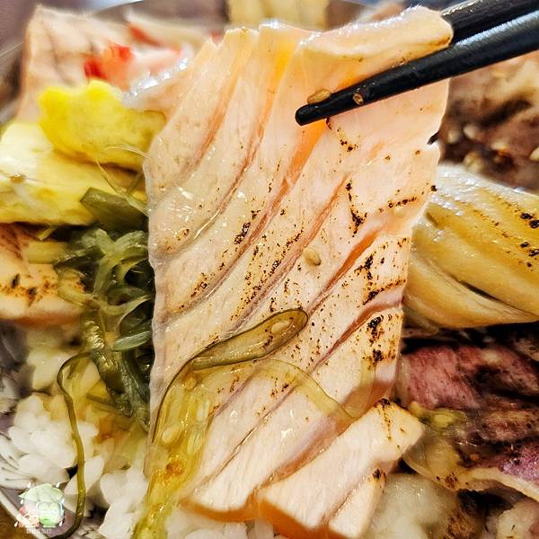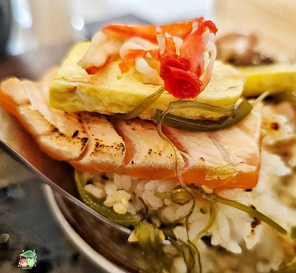 三寶丼除了鮭魚還有牛肉以及星鰻﹐還添加海帶絲、玉子燒﹐最後使用鮭魚卵點綴﹐很多人吃鰻魚都會擔心腥味﹐但是桑桔的星鰻完全沒有腥味﹐味道就像小時候吃的鰻魚罐頭!三寶丼一整碗滿滿的料﹐有夠豐盛﹐完全不用擔心吃不飽!